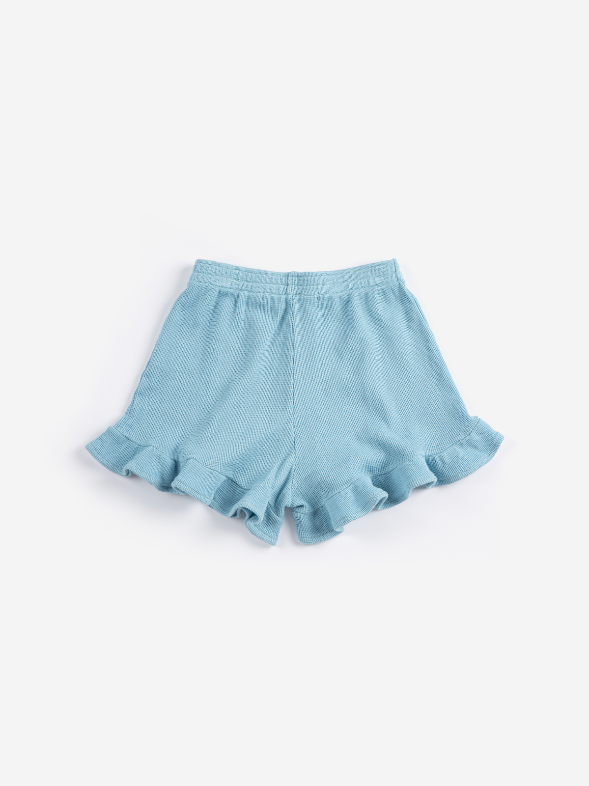 Light blue shorts designed with a comfortable elasticated waistband, relaxed fit, playful ruffle details, and delicate embroidery. Perfect for everyday wear and warm days.